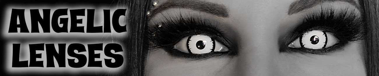 Angelic contacts are available in bright Blue, Red, Yellow, Green and even White. Angelic Red contacts are good for zombies, vampires, devils and demons. Angelic Blues are amazing with clown costumes, living dolls or a Princess.